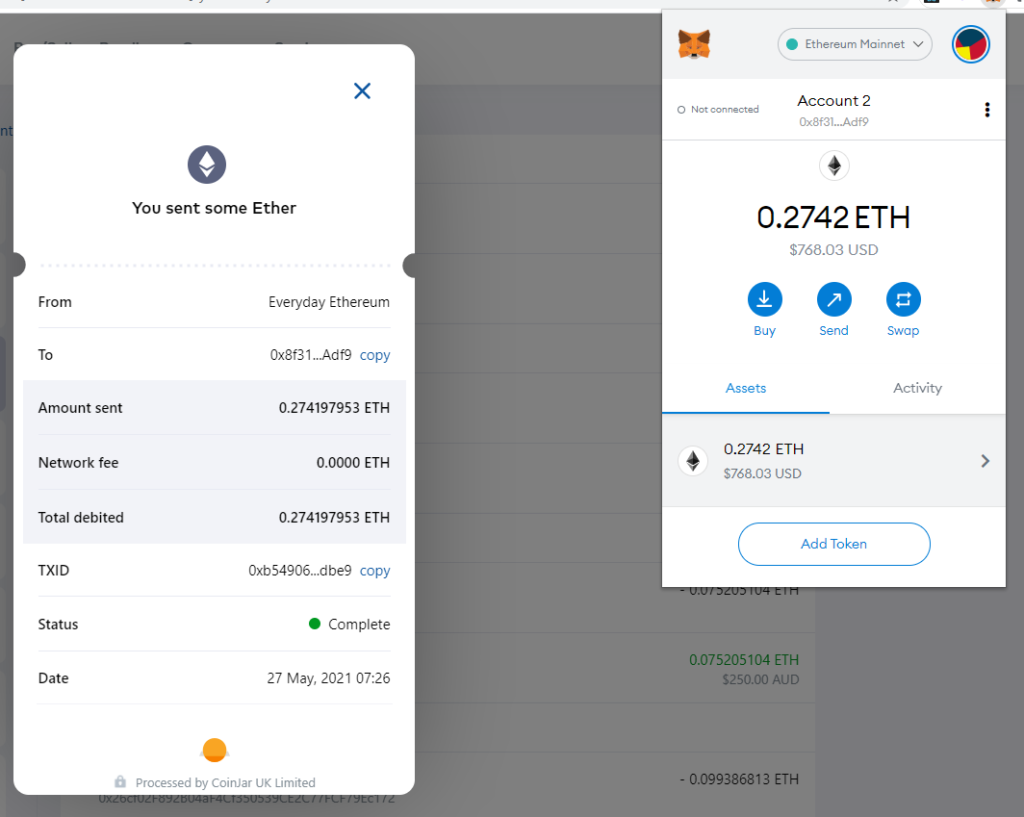- Ethereum transaction fee to move your ETH from your Coinjar account to your own Metamask Ethereum wallet. This fee will be shown to you in Coinjar when you withdraw your ETH to your wallet.