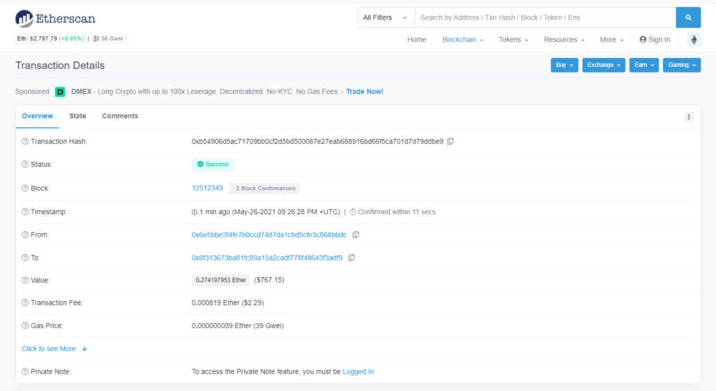 If it has worked correctly, then you will see a popup showing âTransaction sentâ.