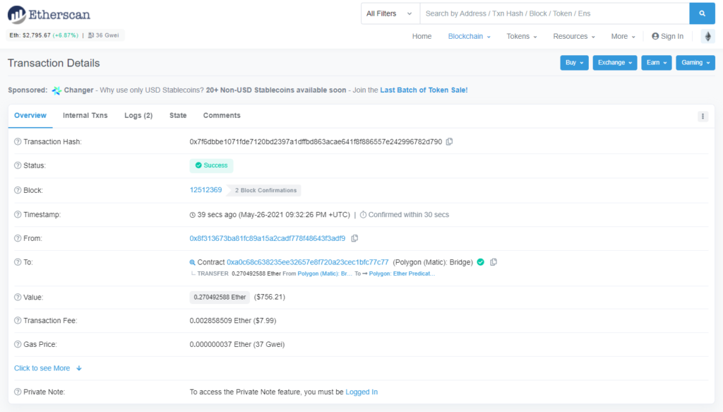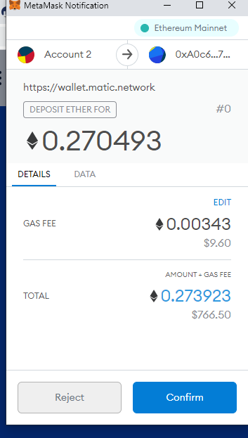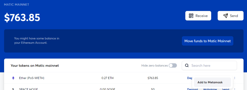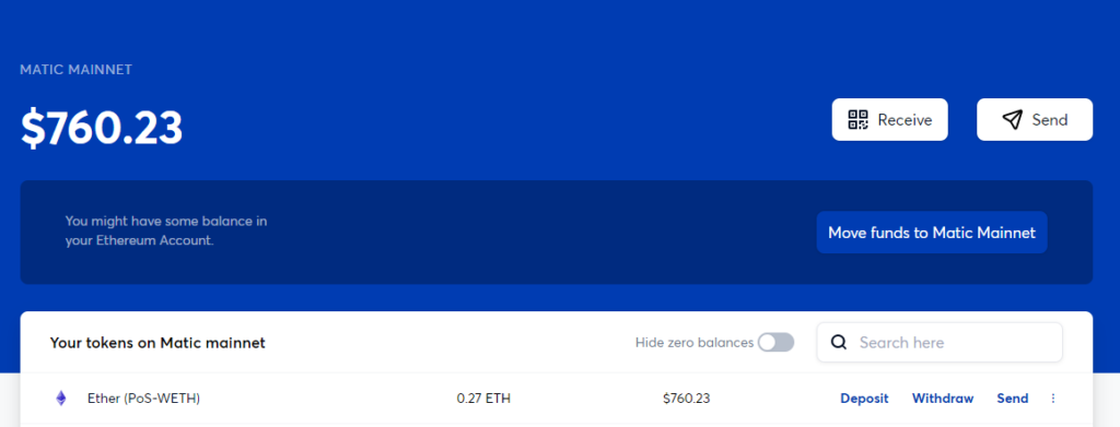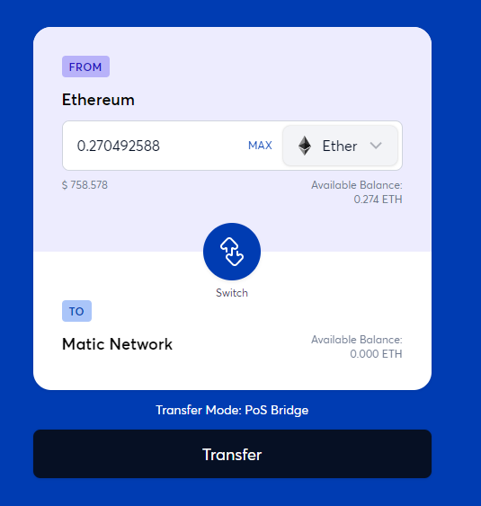 Next, we will use the Polygon PoS bridge to move our ETH from Ethereum Mainnet over the Polygon network.