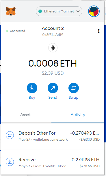 Now you will see your ETH balance you have transferred over in your Metamask wallet on Polygon.