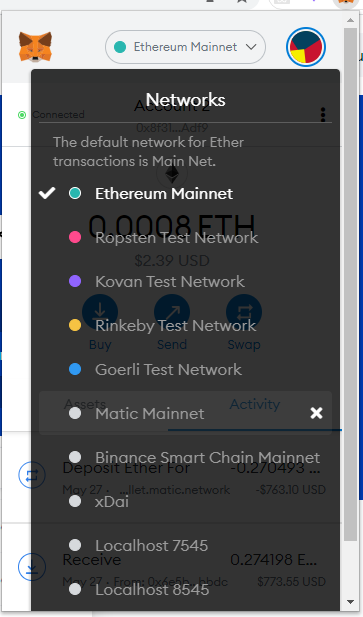 To use the Polygon network in Metamask we will need to add a new custom RPC.