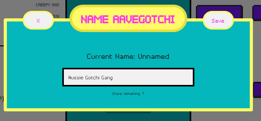 Give your Aavegotchi a name, then select Save, which will create a Metamask transaction.