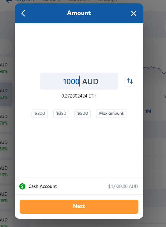 Then I will enter 1000 AUD in the amount screen and select the next button.